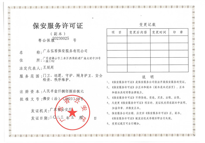 • 保安服務許可證副本
